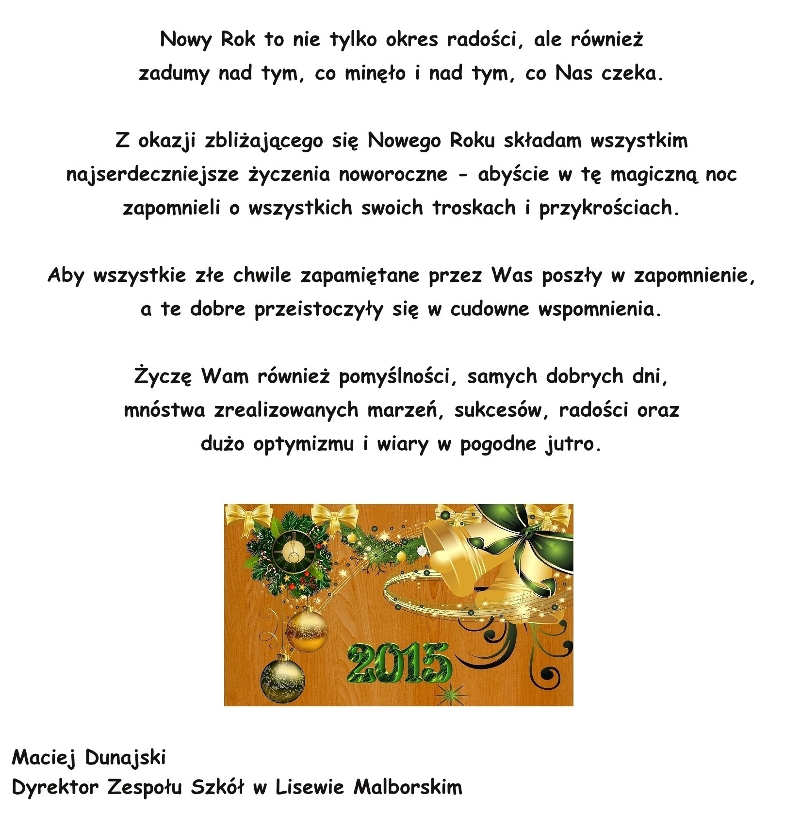 * Ż Y C Z E N I A * N O W O R O C Z N E * Zdjęcia Załączniki życzenia noworoczne [625.98 kB] Zobacz również PODZIĘKOWANIE ZARZĄDZENIE NR 9/2014 * Ż Y C Z E N I A * Ś W I Ą T E C Z N E * * Ż Y C Z E N I A * N O W O R O C Z N E * ZIMOWISKO :) ZIMOWISKO - RAMOWY PLAN ZAJĘĆ 30 grudnia 2014 Aktualności Wydrukuj Udostępnij Wyświetlono: 526